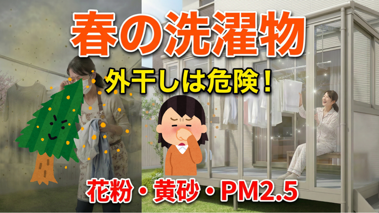 暖かくなってくる春は本来、洗濯物がよく乾く嬉しい季節のはずです。しかし、現代の日本において、春は洗濯物にとって「一年で最も危険な季節」と言っても過言ではありません。2月から4月にかけて、あの厄介なスギ花粉がピークを迎えるだけでなく、大陸からの「黄砂」、そして微細な化学物質「PM2.5」が同時に飛来するからです。これらが付着した衣類を身につけることは、アレルギー体質の方や小さなお子様にとって、決して無視できないリスクとなります。