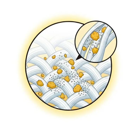 中国大陸の内陸部の砂漠から、偏西風に乗って飛来する鉱物性の砂です。ただの砂埃と侮ってはいけません。黄砂の粒子はマグネシウムやケイ素などの鉱物を含んでおり、非常に硬く尖った形状をしています。これが繊維の奥に入り込むと、物理的に取り除くのが非常に困難です。洗濯物がなんとなくジャリジャリする、黒い服が白っぽくなる、といった現象は黄砂の影響が高いです。また、黄砂は大気汚染物質を吸着して飛んでくることもあり、健康への影響も懸念されています。