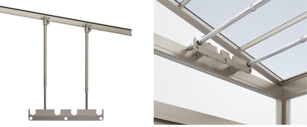ここでとても重要なポイントをお伝えします。実は、LIXILのサニージュ本体には、物干し竿を掛ける装備が標準で付いていないんです。「洗濯物を干すつもりでテラス囲いを設置したのに、竿を掛ける場所がない!」という事態になりかねません。